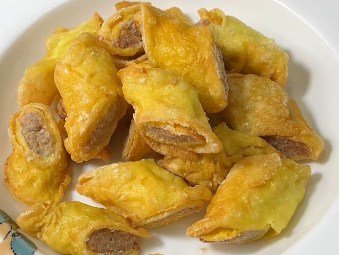 薄如蟬翼的蛋皮包裹鮮肉或素餡,炸至金黃酥脆。一口咬下,外脆內嫩,蛋香與肉汁交織,是夜市裡讓人停不下嘴的"罪惡美味"。