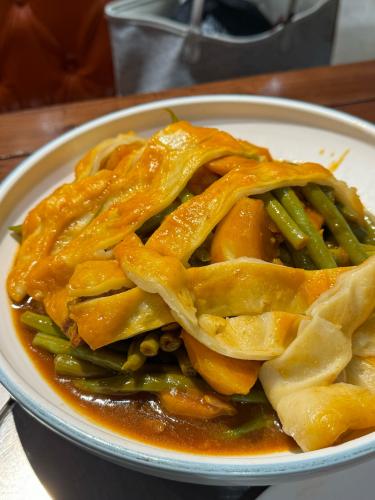 一道"烀餅"濃縮了東北人的豪邁與溫情。豆角、排骨與土豆在鐵鍋中翻滾,麵餅覆於其上,半蒸半煮間吸盡湯汁精華。上層筋道彈牙,底層鹹香軟糯,一鍋端上桌,便是最地道的"家的味道"。