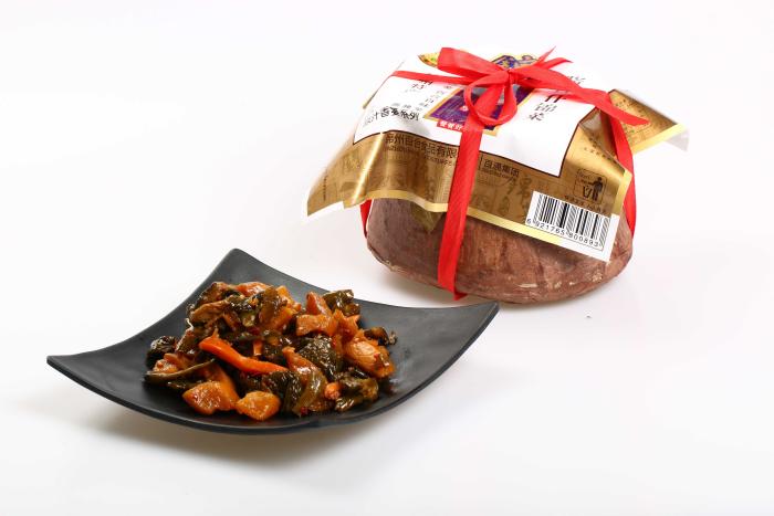 以豬肉為原料,經鹽、白酒、花椒等醃製後風乾,幹醬肉色澤鮮紅、脆而不柴。切片佐酒或夾入燒餅,鹹香中透著一絲回甘,是錦州人餐桌上的"常駐嘉賓"。