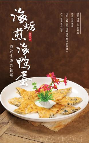 由於當地養殖的鴨子受到海水滋養,當地人習慣稱其為海鴨,其蛋就是“海鴨蛋”。“肥美海蠣+放養鴨蛋,邊緣煎得焦脆,海蠣的鮮美與海鴨蛋的柔滑完美融合,滿口都是海的味道。”紀寬宏評價道。