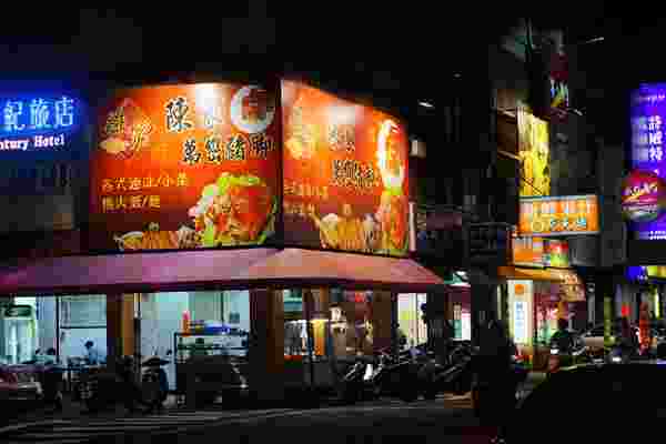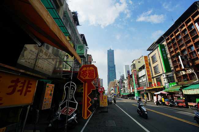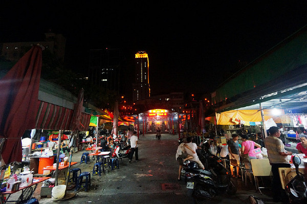 高雄的美食除了頭塊牌子--六合夜市,還有瑞豐、金鑽和凱旋,後兩者是排在一起,平時輪流開,週末一起開。不過這些夜市越來越針對觀光客了,基本上都大同小異,所以我說個遊客少的地方,當地人推薦的苓雅夜市,或許叫苓雅美食街更合適點,它包含苓雅路和自強三路,那裡有著很多飲食店鋪,遠處的高樓就是高雄85。