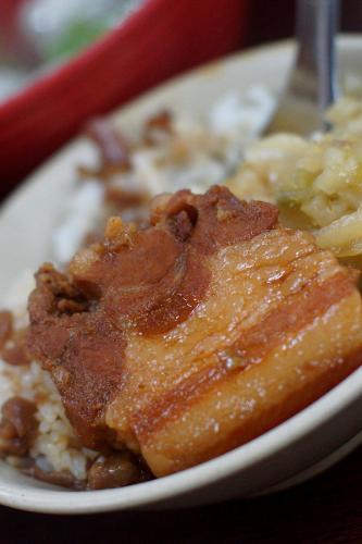 魯肉飯上來了,貌不驚人,可是一入口,大家都讚歎不已,肥而不膩,入口即化。