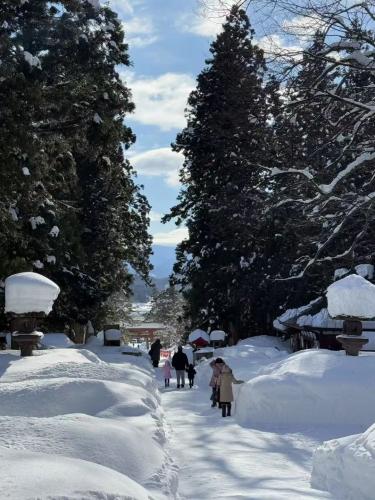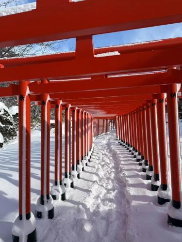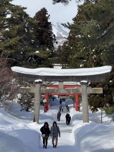 神社的參道正對著巖木山,如果參觀完,可以再走小徑到不遠處,森林裡的求聞寺,再稍微走20分鐘,可以走到高照神社,都屬於冬季雪景絕美,人又很少的地方。很適合安排一到三小時的參觀時間。