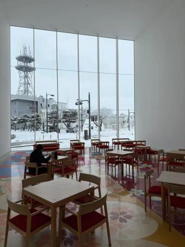 青森市區並不大,隨意走走就可以。大家都會去的是車站邊上,青森老港前的A-factory,一間賣著青森各種特產(蘋果加工品為主),以及咖啡甜點的舊倉庫改建建築,看海看雪都是一絕。