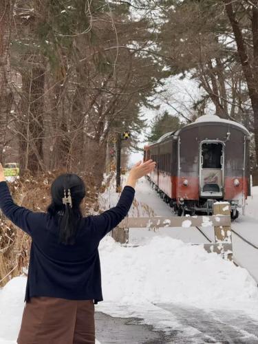 神社參觀一小時綽綽有餘,參觀完直接打車前往津輕鐵路末站“津輕中裡”站搭乘暖爐列車,車程大約半小時,車費約6000元(請賣各種御手的女巫或小哥幫你叫車)