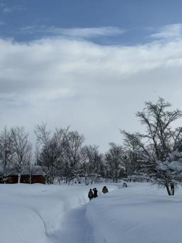 其實奧入瀨溪流最好的旅遊季節是秋季,從旅遊服務處沿著奧入瀨溪,有條徒步道,十公里走到十和田湖,一路五彩斑斕,美不勝收。然而到了冬季,這條徒步道就被大雪覆蓋消失了,只能在旅遊中心附近做短距離的雪中徒步體驗。