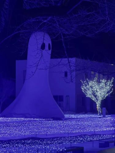 如果你在冬季晚上住在十和田市區,走到美術館前,則會看到這個驚聳可愛的畫面。