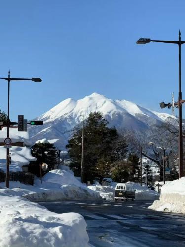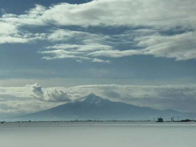 八甲田山位於青森市區南邊,標高不過1600,冬天晴朗時在市區都能見到那道白色大雪坡。