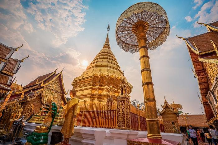 素貼山是清邁周邊最著名的景點之一,也是清邁的地標性景點。您可以乘坐車輛或徒步登上山頂,參觀素貼寺(Wat Phra That Doi Suthep)。這座寺廟是泰國最重要的佛教寺院之一,以其金碧輝煌的佛塔和壯麗的寺廟建築而聞名。從山頂俯瞰清邁市區的全景,尤其是夕陽下的美景,令人陶醉。在山腳下,還有許多傳統手工藝品和紀念品的攤位,供您購買紀念品。