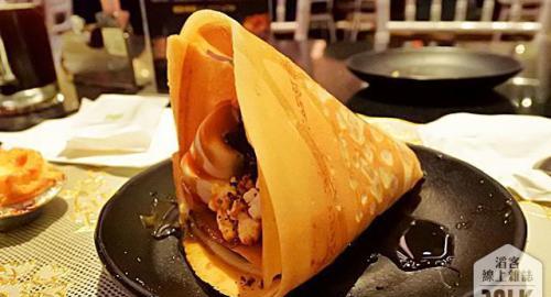 甜點區的蛋糕、甜點都還不錯,但小編最愛現烤的可麗餅皮,可麗餅的餡料有分甜的和鹹的,嘗過之後覺得脆脆的餅皮最好吃,於是小編髮明瞭新吃法,請服務員只烤餅皮,然後自己去挖冰淇淋放在餅皮裡,脆脆的餅皮沾著冰淇淋,還挺好吃的。