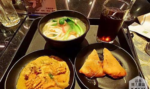 泰式料理區,有蝦餅、大薄片、咖哩、春捲等多種泰式料理,還有現煮湯麵,自行選擇麵條再搭配配料,還可以選擇清湯、酸辣等湯頭,把選好的食材給師傅,他就會幫你煮好一碗湯麵。